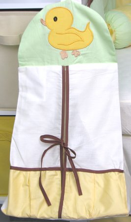 - (1)Fitted Sheet,(1)Crib Skirt (Dust Ruffle),(1)Diaper Stacker