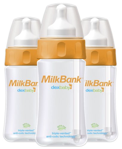 Dex Products MilkBank Vented Feeding Bottles are designed with bottle caps that are triple vented to allow for an unobstructed flow of milk. This helps prevent colic, spit-up, burping, gas and ear infections. The patented leak-proof filter system promotes zero leakage for less mess during feeding time.