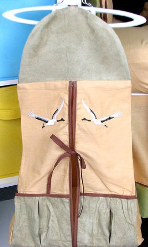 This bedding set is absolutely gorgeous, in fact it is nicer than I expected. The set is actually a very pretty green (which is soft like micro-suede) and tan with beautiful embroidery! I was surprised at how small the bag was that everything is stuffed into... but actually all the pieces are perfectly sized and very nice. The pillow is cute and pretty small -so it will probably be just a fun decoration, and like other people have said, the "bib" is nothing to write home about - but what bib is? I found the diaper stacker sits perfectly if you place a 7"X11" piece of cardboard in the bottom of it... which is really NOT that big of a deal to do! For the price this is an AWESOME bargain!